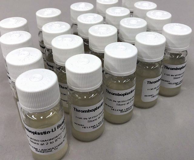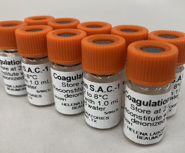 Helena’s TCT assay uses a low concentration of thrombin (3 NIH units/mL) with undiluted plasma. It is sensitive to fibrinogen levels below 70 mg/dL. The reagent is ideal for automated, semi-automated and manual instruments.