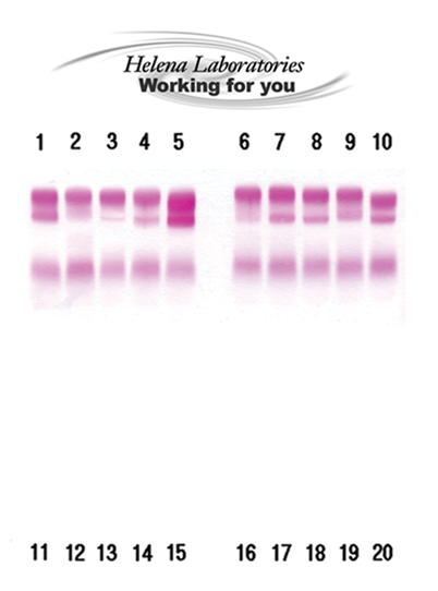 QuickGels allow small-volume laboratories to perform lipoprotein phenotype testing with excellent separation of alpha, pre-beta, and beta lipoproteins, as well as chylomicrons. Samples are stained using a traditional lipoprotein stain, Fat Red 7B. Stained bands may be visually inspected or quantitated using QuickScan Touch or a scanning densitometer at 525 nm.