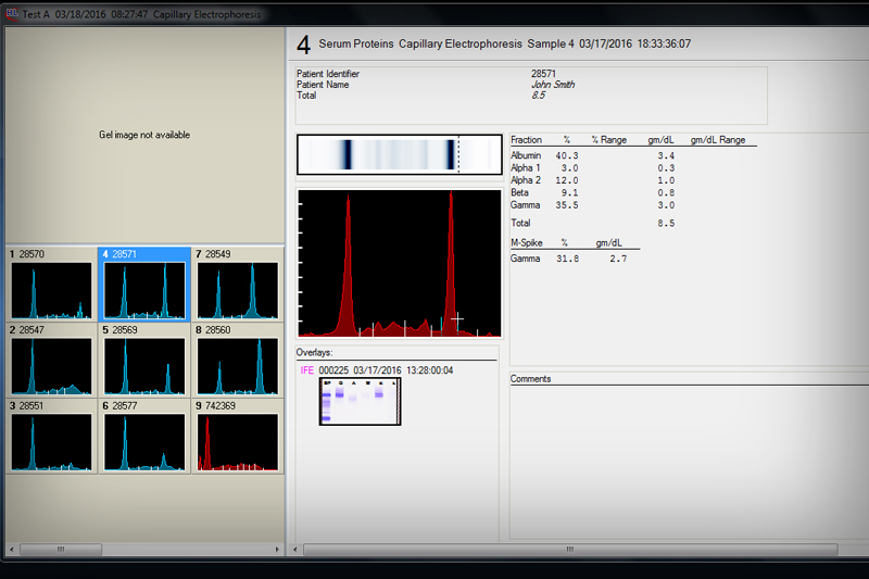 The intuitive V8 system software provides ease of operation and plenty of user-defined options. Patients results can also be integrated into the QuickScan system for integrated reporting with gel results and tracking of treatment progress with the Myeloma Module.